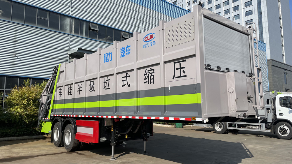 四、其他說明: 半掛式設計使其車身較長,車廂容積一般可達 30-40 立方米甚至更大,能裝載大量垃圾,可有效減少運輸次數,提高垃圾清運效率,適合城市大型垃圾轉運站、大型社區或商業區等垃圾集中區域的垃圾清運。對于生活垃圾、建筑垃圾、工業垃圾等多種類型垃圾,只要在車輛設計承載范圍內,均可進行裝載運輸。較大的空間也便于收納體積較大的垃圾。